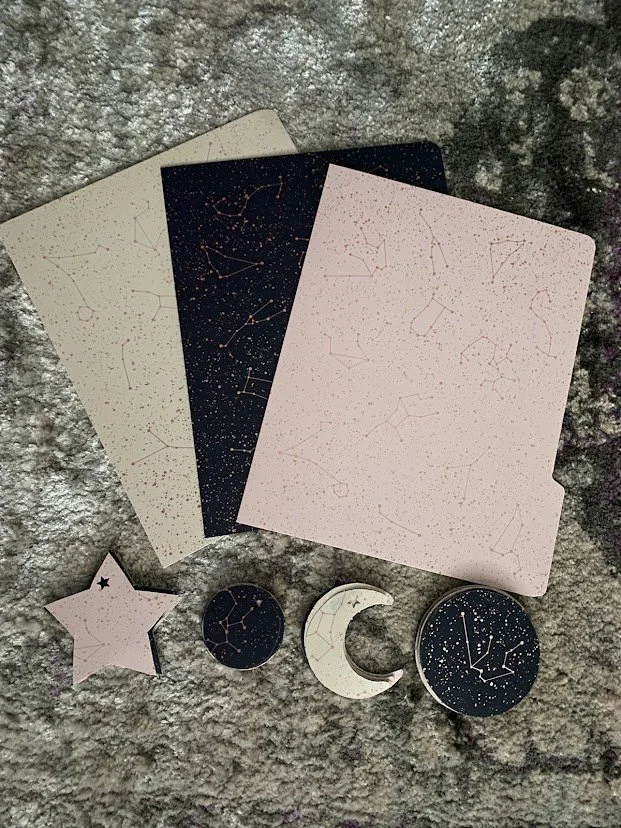 Also, if you are on the hunt for folders like mine, here are some I found with astrological print: Zazzle, Deal Genius, and one more cute find from Zazzle.